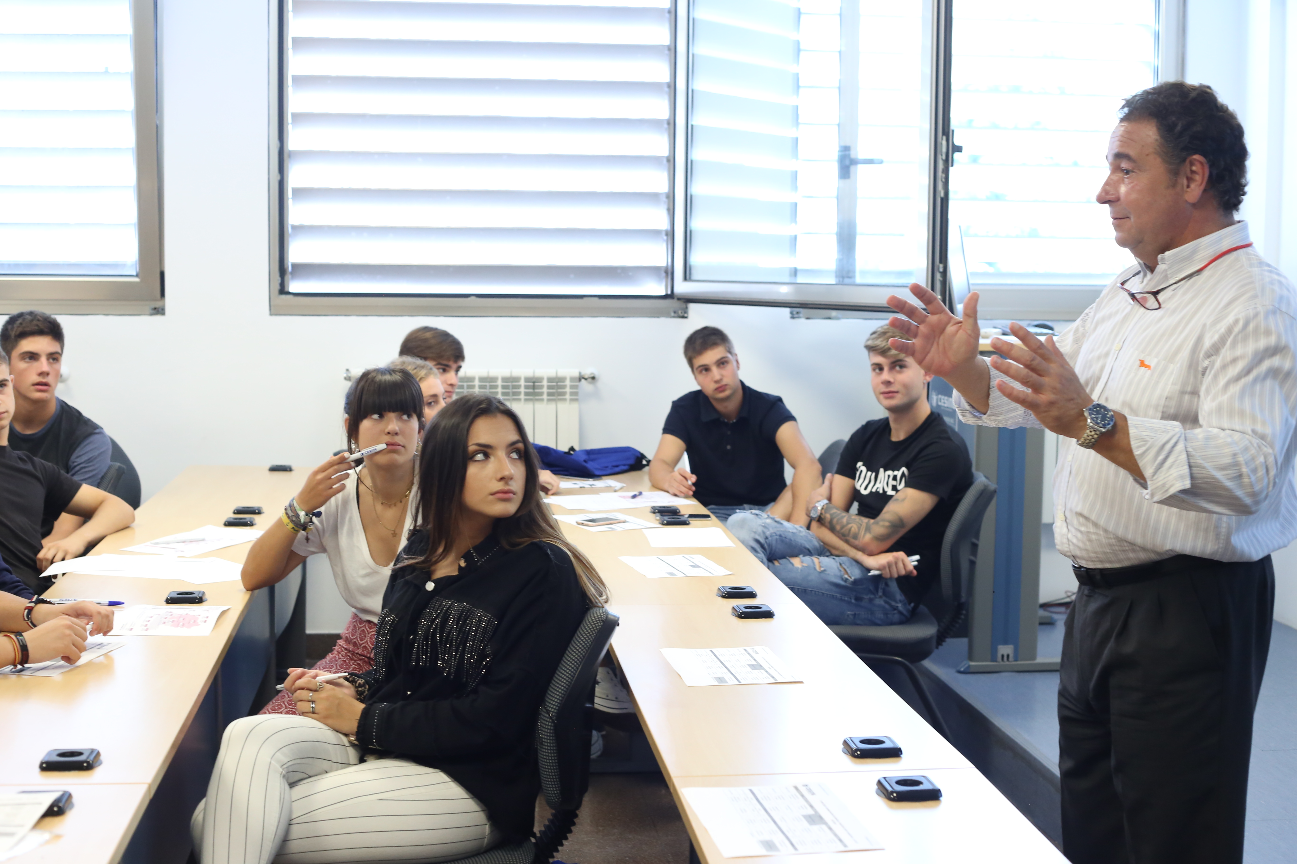 Juan José Fernández, en plena presentación de su asignatura. “Siempre digo a mis alumnos que tienen que salir de su zona de confort ya que es muy difícil conseguir objetivos si no haces algo diferente”, así de rotundo se muestra Juan José Fernández, director general de Mercasantander y profesor de Marcoeconomía, que aplica los fundamentos prácticos más actualizados con los estudiantes de CESINE.